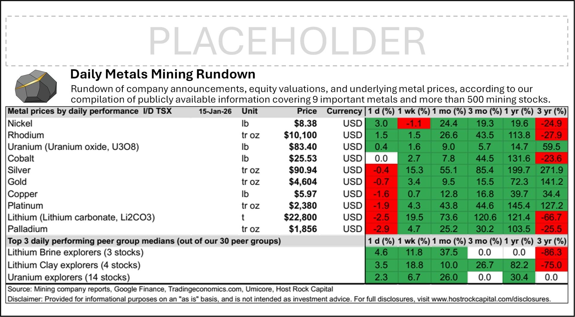 - Daily Metals Mining Rundown for 15 Jan 2026 (intraday TSX)