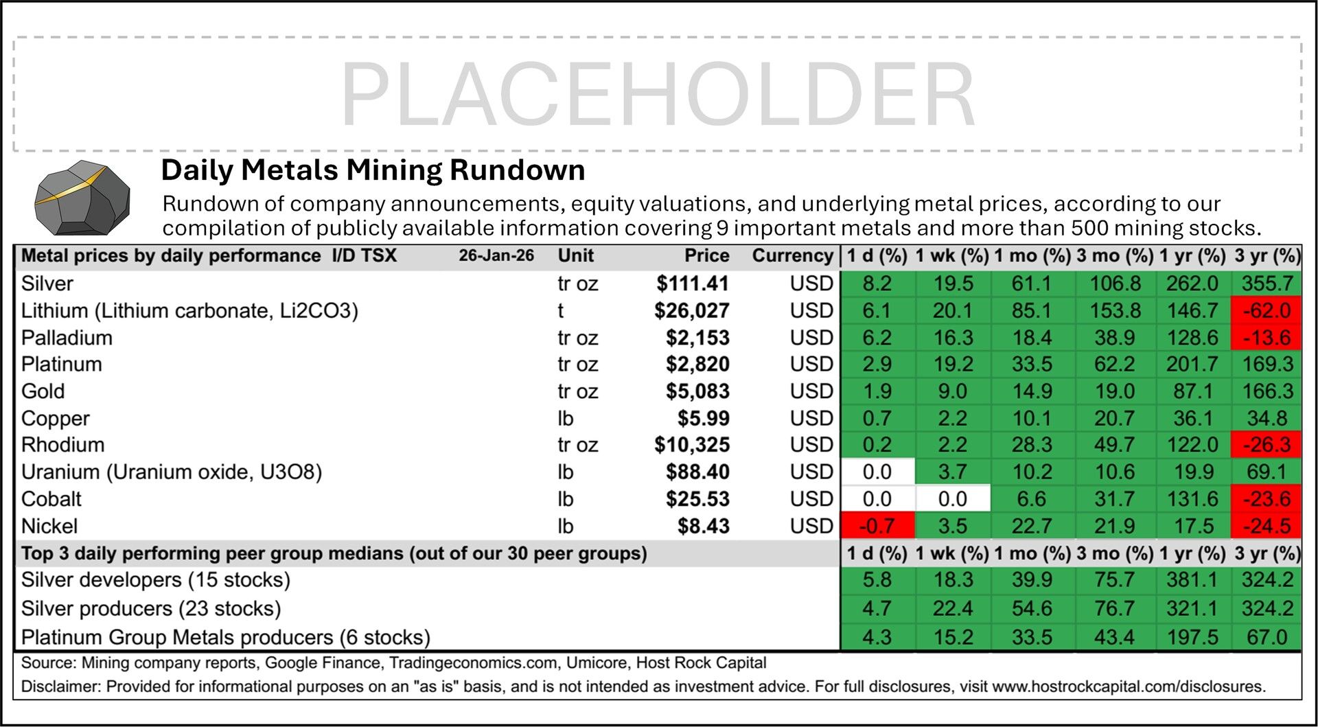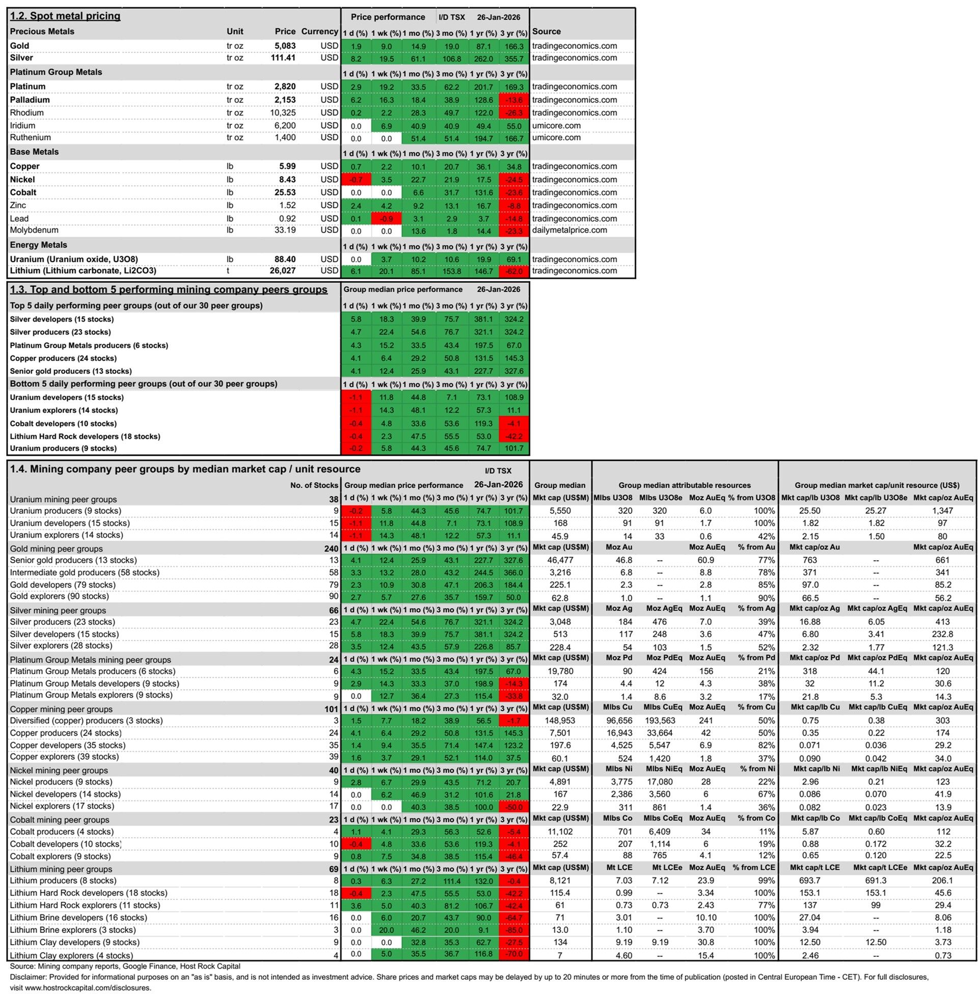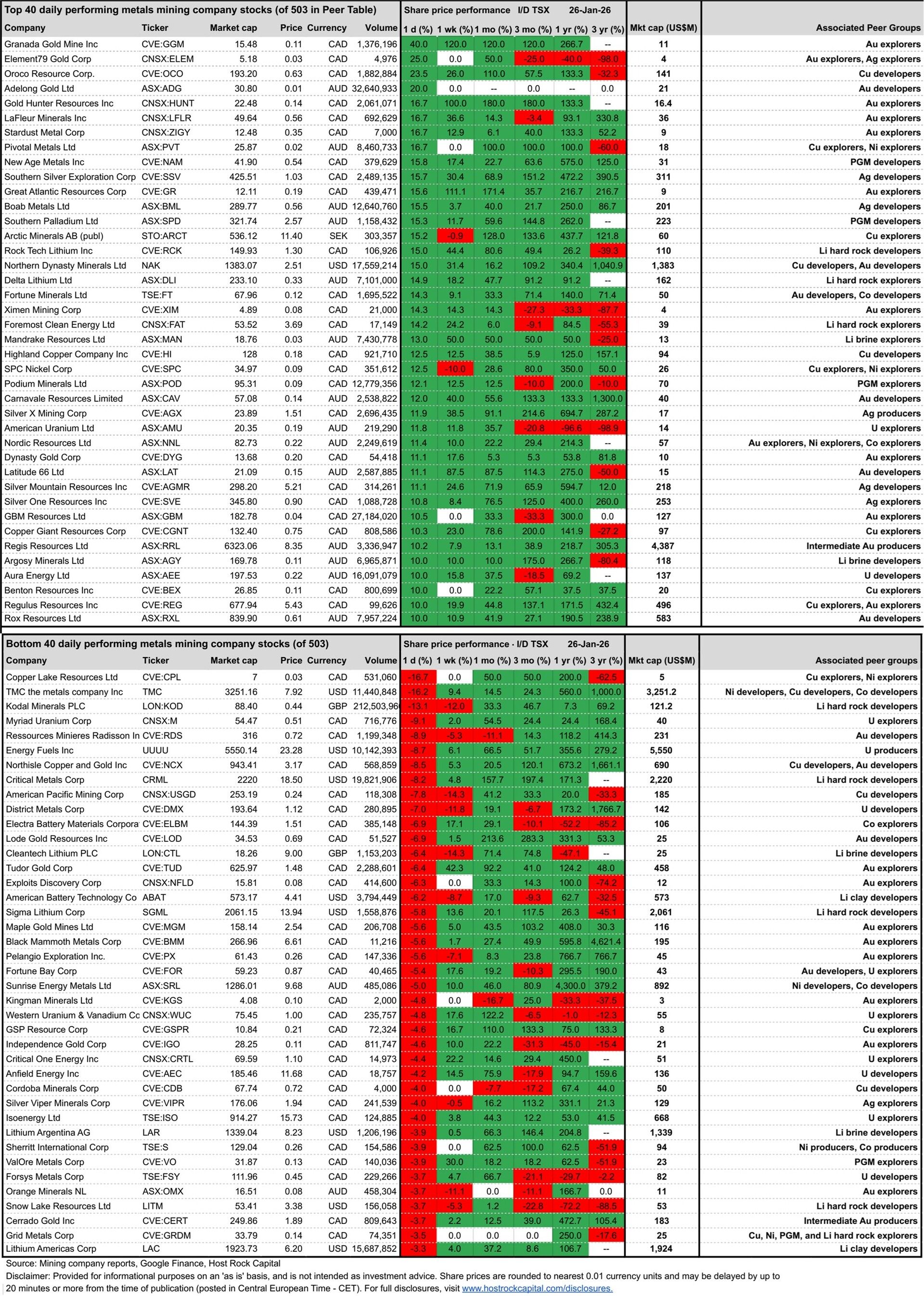 - Daily Metals Mining Rundown for 26 Jan 2026 (intraday TSX)