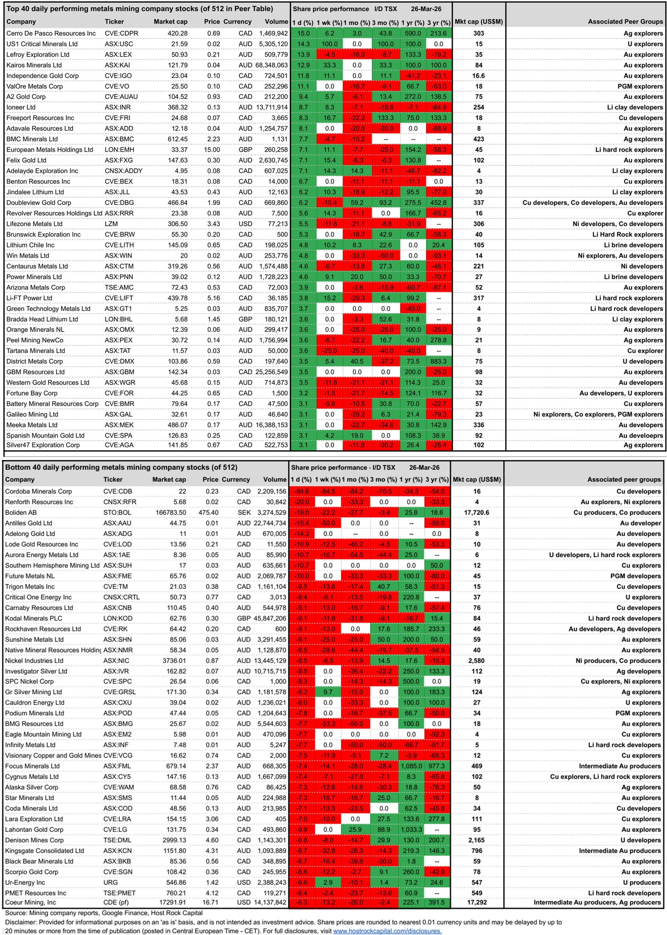 - Daily Metals Mining Rundown for 26 Mar 2026 (intraday TSX)