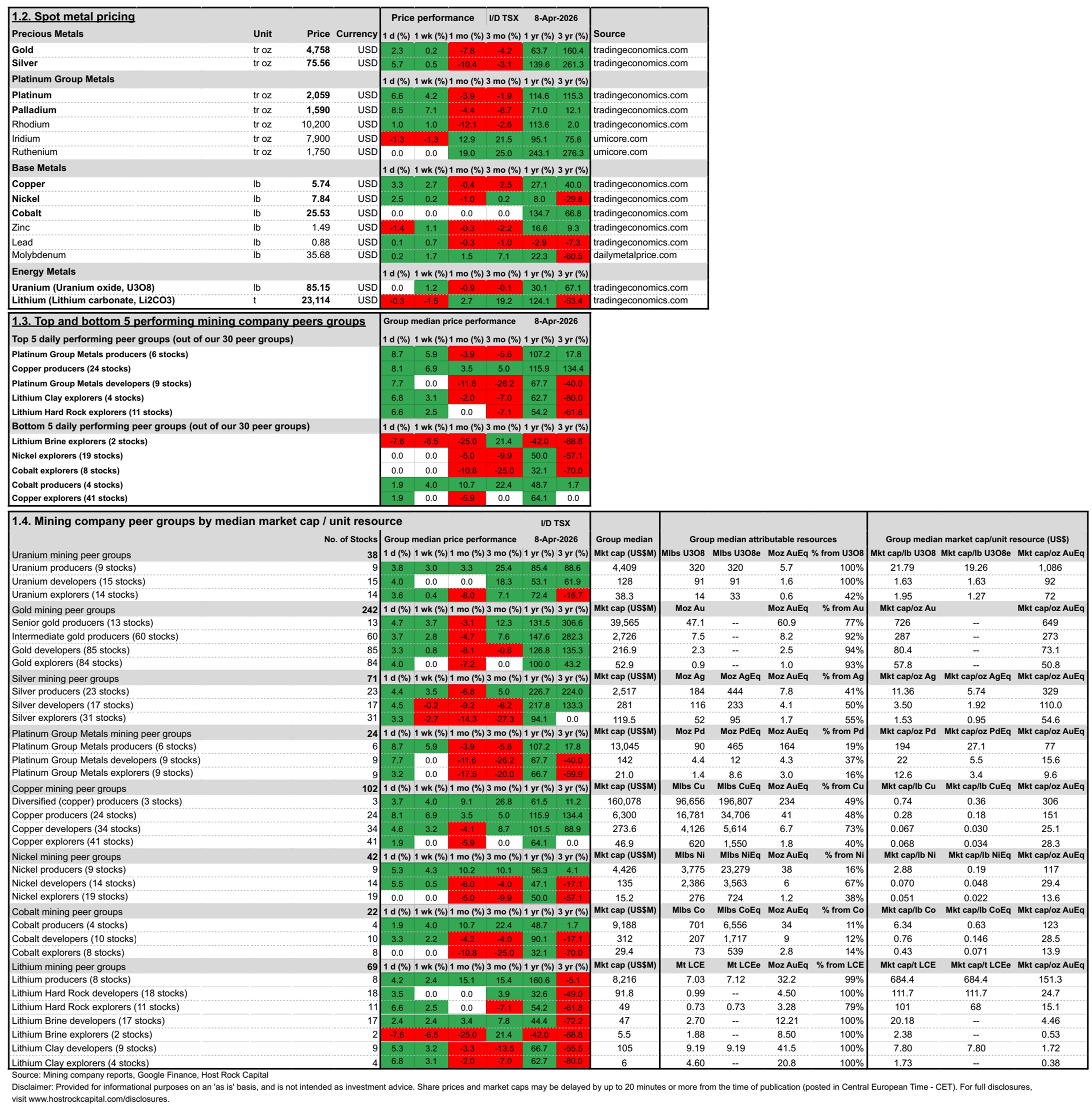 Daily Metals Mining Rundown for 8 Apr 2026 (intraday TSX)